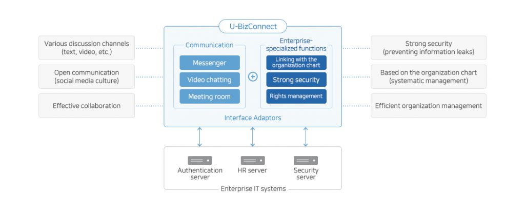 The business social media platform is a collaboration tool for enterprises that actively respond to the changed environment, is optimized for the corporate business environment, and adapts to the smart age, as more and more businesses are handled using private messenger due to the spread of BYOD (Bring Your Own Device). U-BizConnect provides improved productivity and strengthened security to enterprises, and efficient communication and sharing environment to employees.